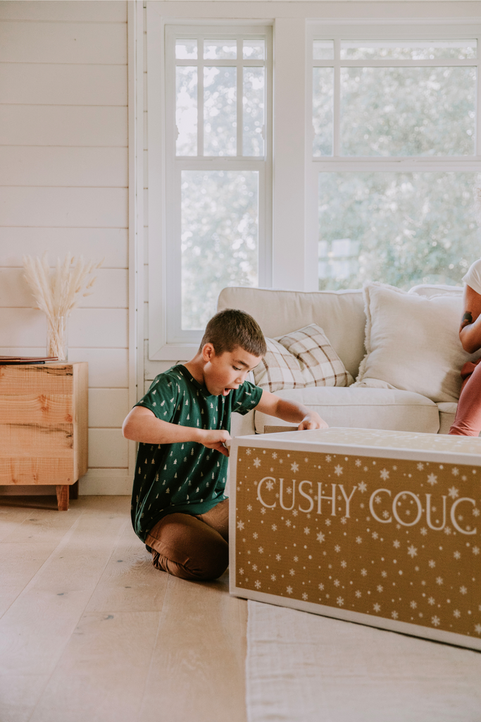 At Cushy Couch, we’re a family business here in Calgary, making kids’ furniture that’s comfortable, stylish, and built to last. We use high-quality Canadian foam and locally sourced materials in everything, from the foam and fabric to the thread and packing. This isn’t just furniture; it’s something your kids will grow up with. Our own kids have been building forts, crashing, and reading on theirs for over five years and it’s still going strong.