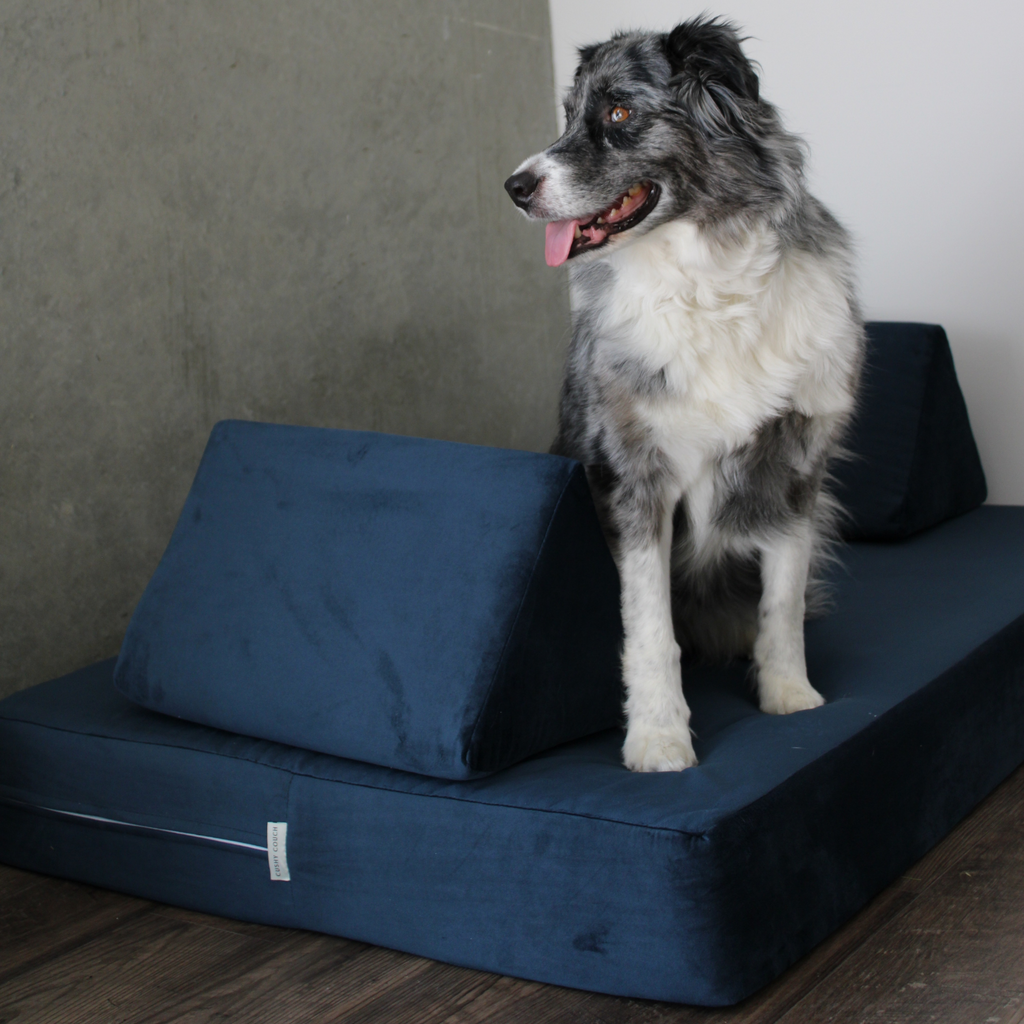 The couch features a cooling memory foam and a durable, supportive base that provides a cozy and supportive surface. The Cushy Mini comes with two triangle pieces for added fun.